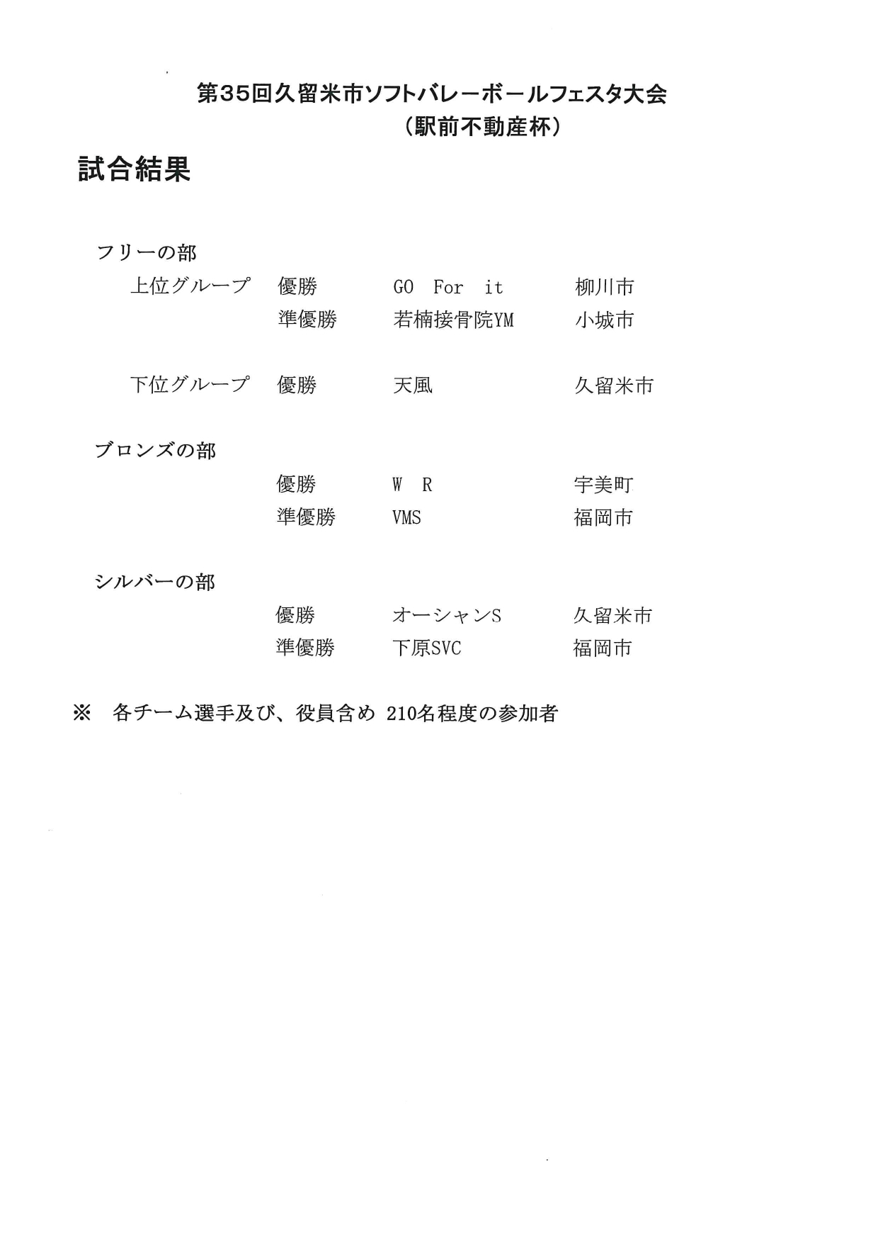 第35回久留米市ソフトバレーボールフェスタ(駅前不動産杯) <開催日11/23>
