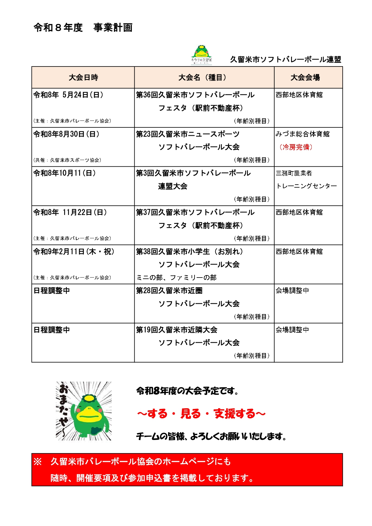 2026年度事業計画(久留米市ソフトバレーボール連盟)
